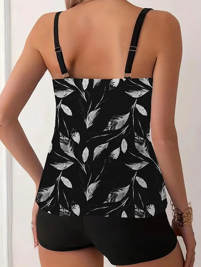 Eleganter zweiteiliger Tankini mit hoher Taille und Blattmuster. Perfekt für Strand und Urlaub – jetzt entdecken.