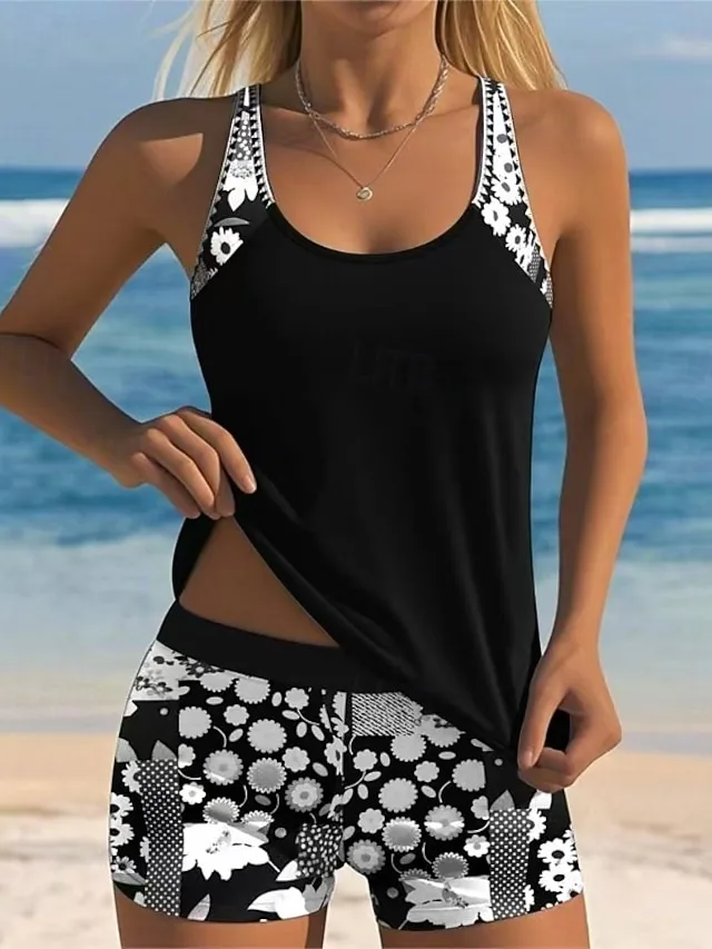 Eleganter 2-teiliger Tankini mit Blumenmuster, gepolsterten Cups und Shorts. Perfekt für Strand, Pool und Urlaub – jetzt entdecken.