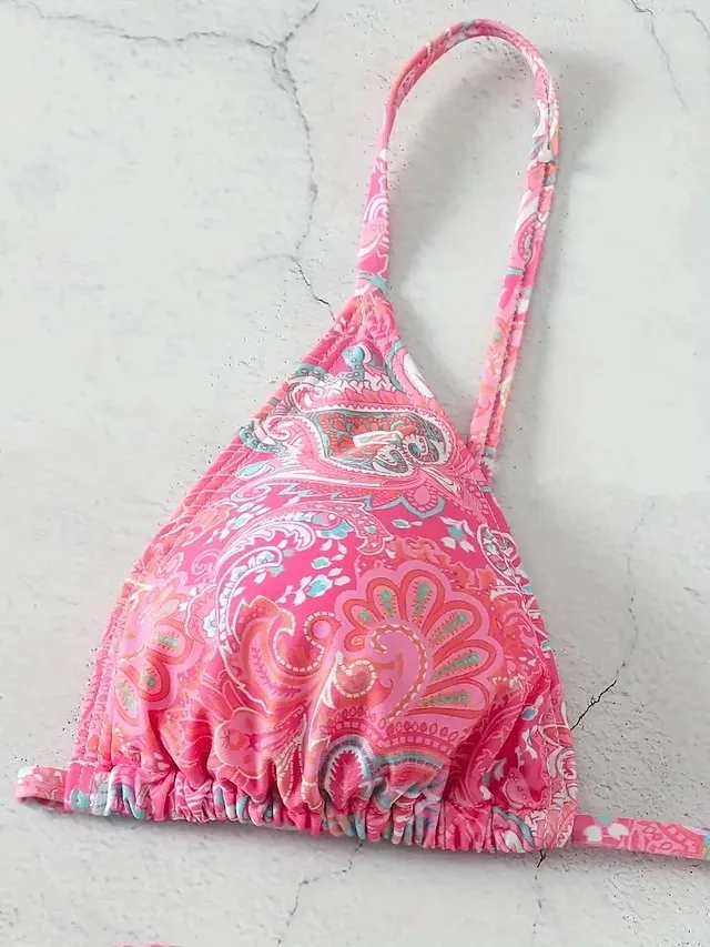 Boho-inspiriertes Bikini-Set mit Paisley-Muster, gepolsterten Cups und frechem Slip. Perfekt für Strand, Urlaub und Pool.