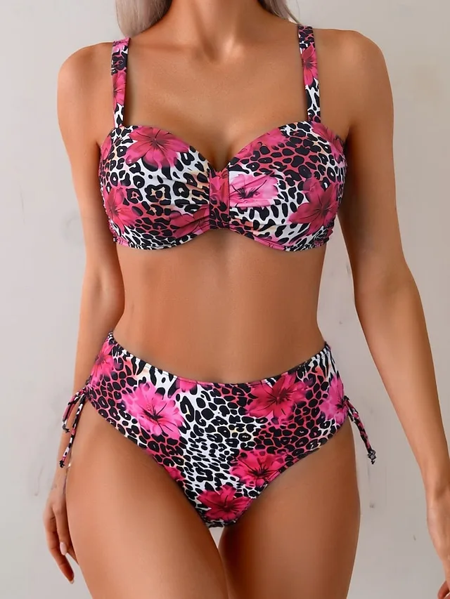 Stylisches Leopard-Bikini-Set mit hoher Taille und gepolsterten Cups. Perfekt für Strand, Pool und Urlaub – jetzt entdecken.