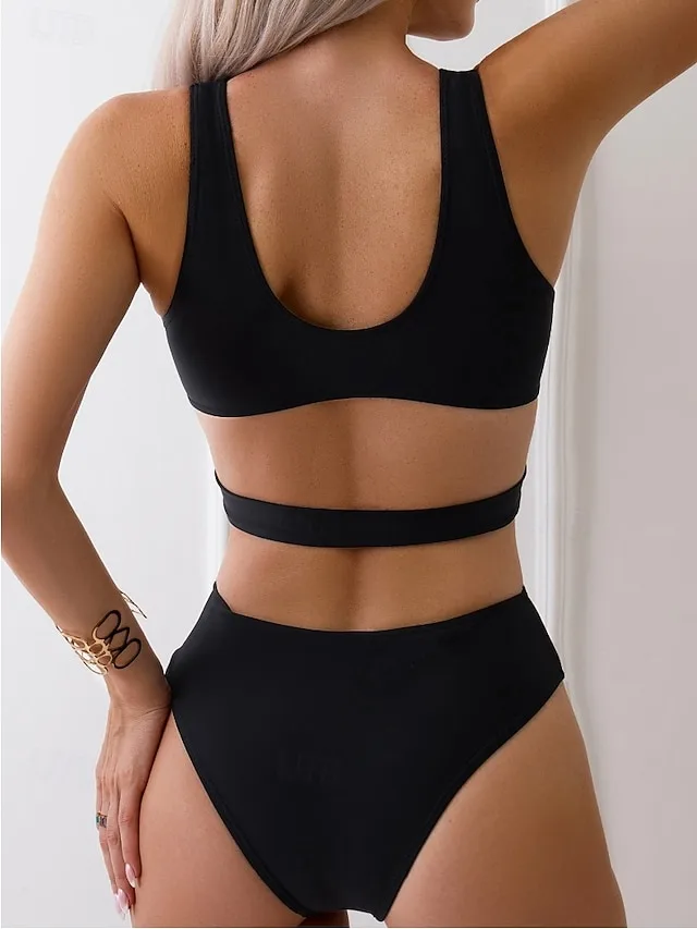 Elegantes Bikini-Set mit hoher Taille, gepolsterten Cups und rückenfreiem Design. Perfekt für Strandtage und Urlaub.
