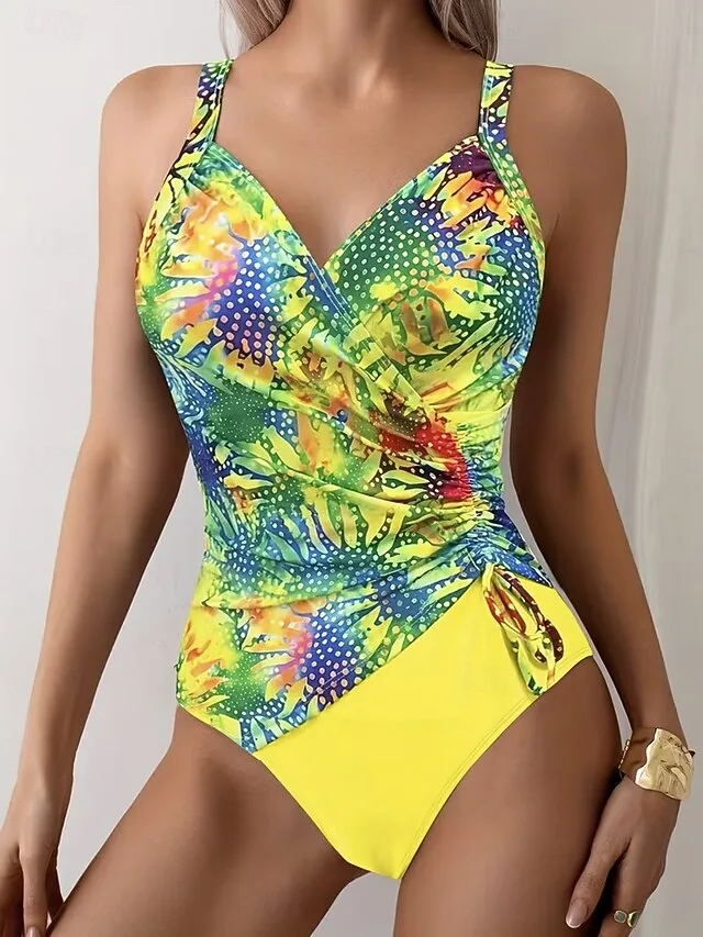 Eleganter Monokini mit V-Ausschnitt, Bauchkontrolle und floralem Print. Perfekt für Strand und Urlaub – jetzt entdecken.
