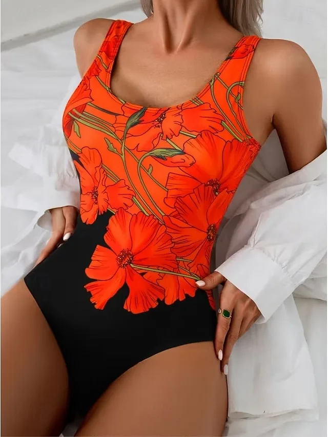 Schmeichelnder Vintage-Monokini mit floralem Muster, U-Ausschnitt und Bauchkontrolle. Perfekt für Urlaub und Strand – jetzt entdecken.