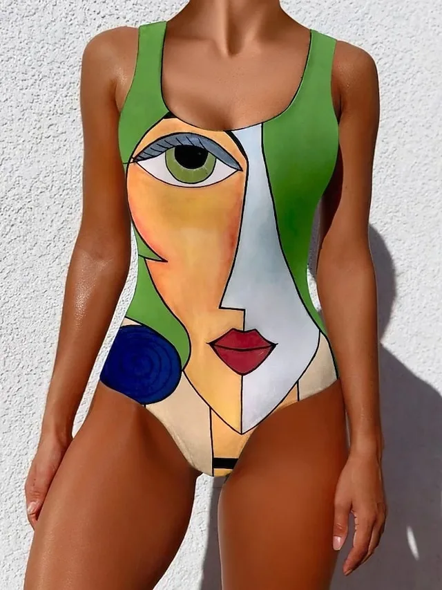 Moderner Einteiler mit geometrischem Print, U-Ausschnitt und gepolstertem BH. Perfekt für Strand, Pool und Urlaub.