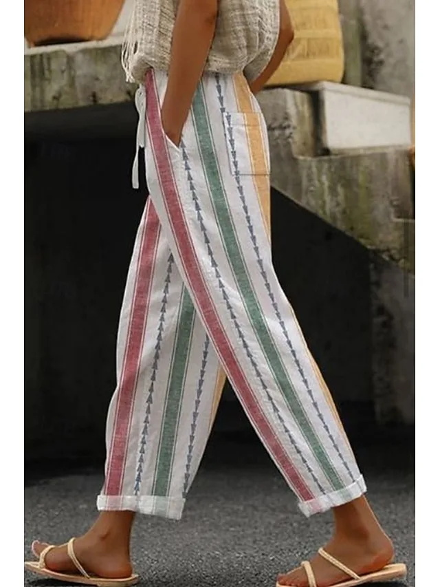 Leichte, lässige Hose mit Streifen, Kordelzug und Taschen. Jetzt stilvoll und bequem für Alltag und Urlaub entdecken.