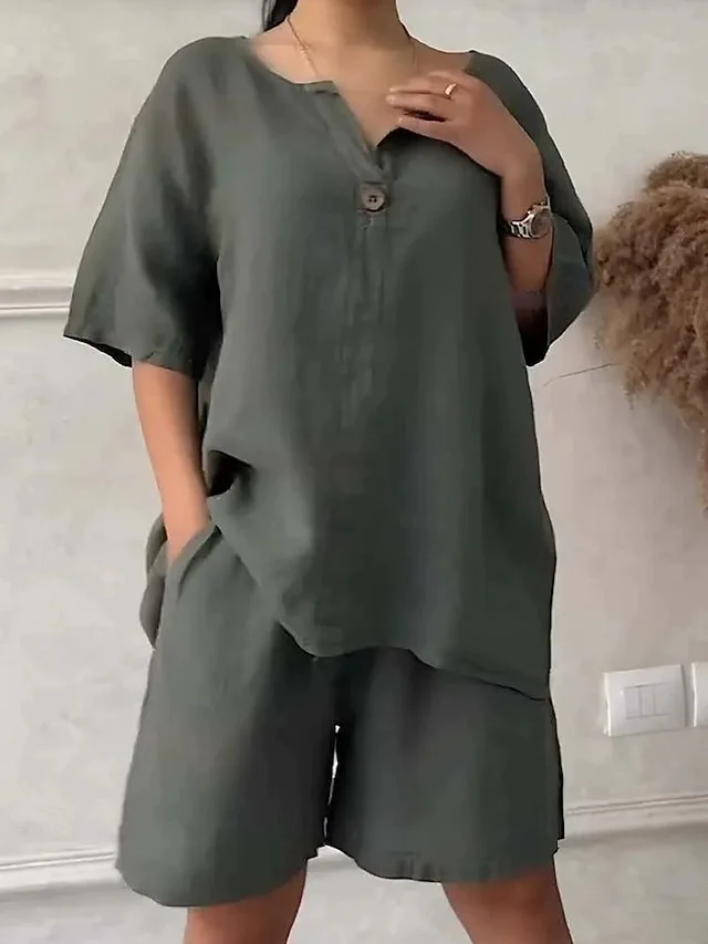 Entdecke das luftige Zweiteiler-Set mit Leinen-Optik und modernem Schnitt – perfekt für Sommer und Alltag. Jetzt stilvoll kombinieren.