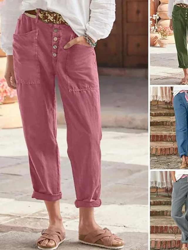 Lässiges Midikleid mit Leinenstruktur, V-Ausschnitt und Knopfleiste. Perfekt für den Sommer – jetzt entdecken.