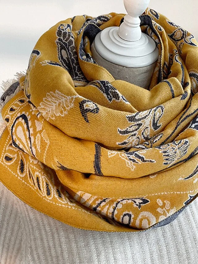 Eleganter floraler Schal in warmen Farben – weich, stilvoll und perfekt für Herbst und Winter. Jetzt entdecken.