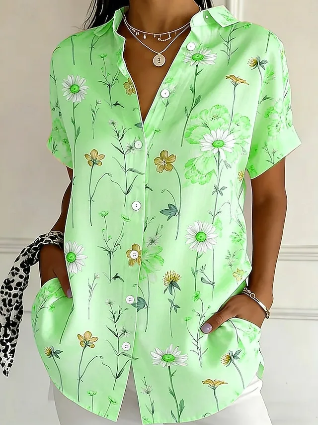 Modernes florales Damen Hemd mit Kurzarm und Hemdkragen. Stilvoll für Alltag, Frühling und Sommer – jetzt entdecken.