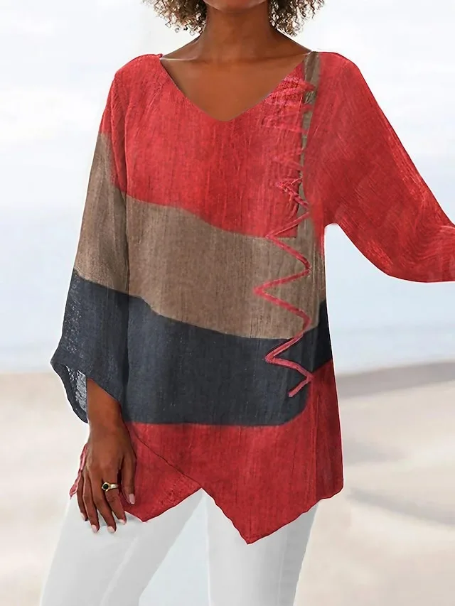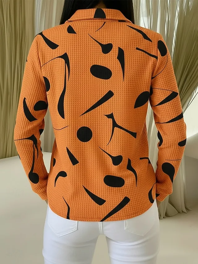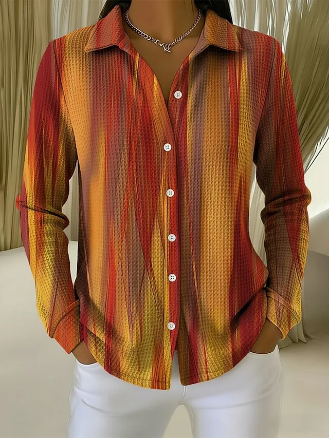 Stilvolles Damenhemd mit grafischem Farbblock-Design, normaler Passform und langem Arm. Perfekt für Alltag und Urlaub – jetzt entdecken.