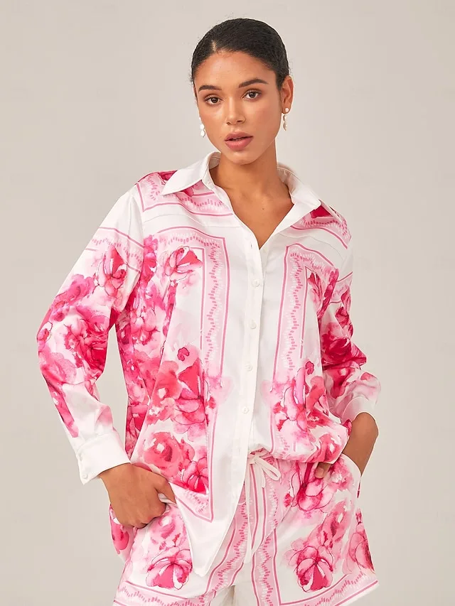 Elegante Blumenbluse mit Hemdkragen und lockerer Passform. Perfekt für Büro und Alltag – jetzt stilvoll entdecken.