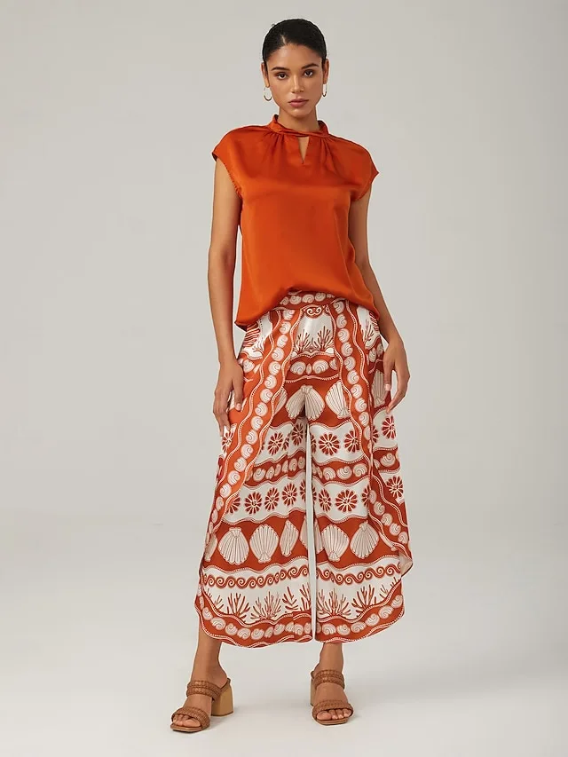 Stilvolles Blumen-Hosen-Set mit V-Ausschnitt und Kurzarm. Perfekt für lässige Looks im Herbst und Winter. Jetzt entdecken.