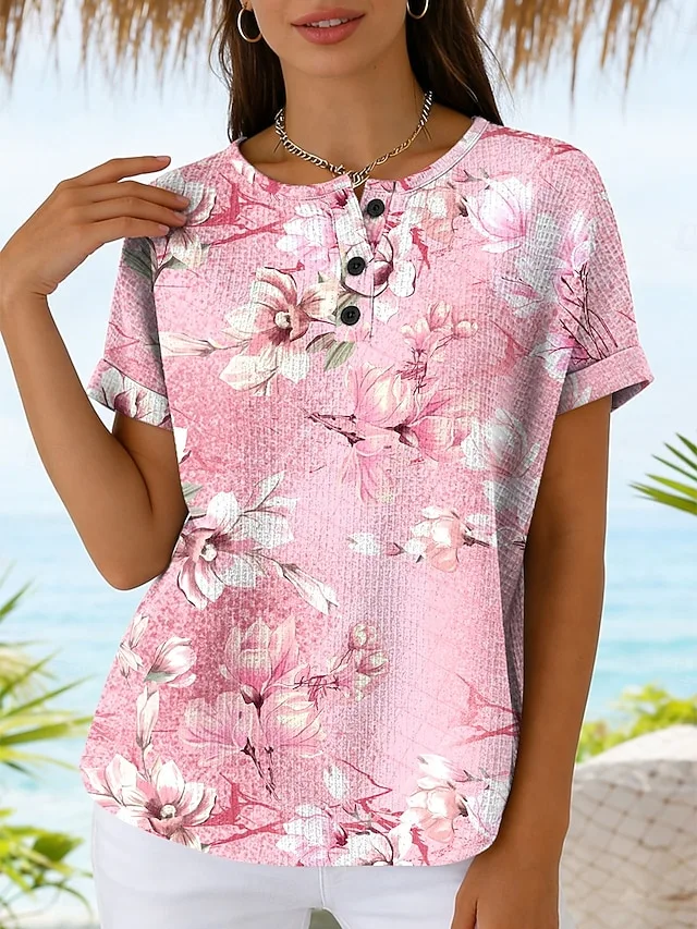 Lässiges Damen T-Shirt mit floralem Druck, Rundhals und Kurzarm. Perfekt für jeden Tag im Sommer – jetzt entdecken.
