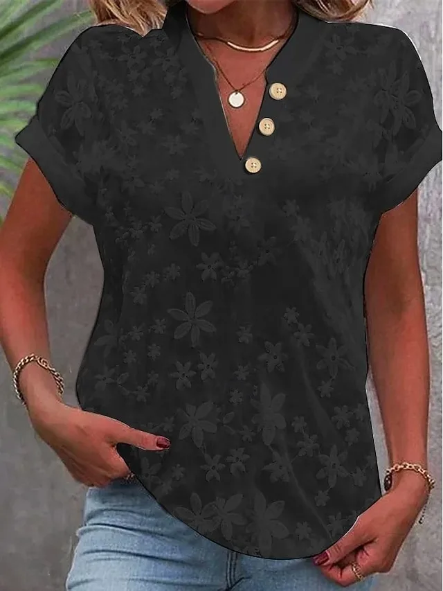 Stilvolle Damenbluse mit V-Ausschnitt und Kurzarm. Vielseitig für Alltag, Arbeit und Freizeit – jetzt entdecken.