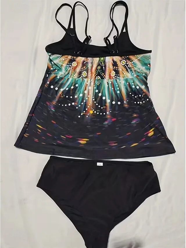 Eleganter zweiteiliger Tankini mit gepolsterten Cups und grafischem Print. Perfekt für Strand, Pool und Urlaub. Jetzt entdecken.