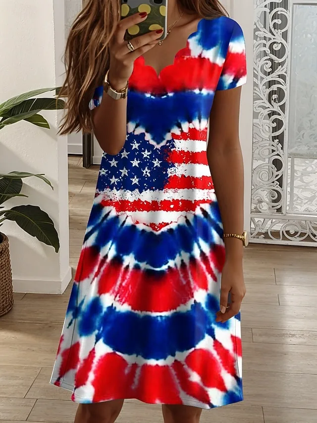 Lässiges T-Shirt mit amerikanischer Flagge, V-Ausschnitt und Kurzarm. Perfekt für den Sommer und den Alltag – jetzt entdecken.