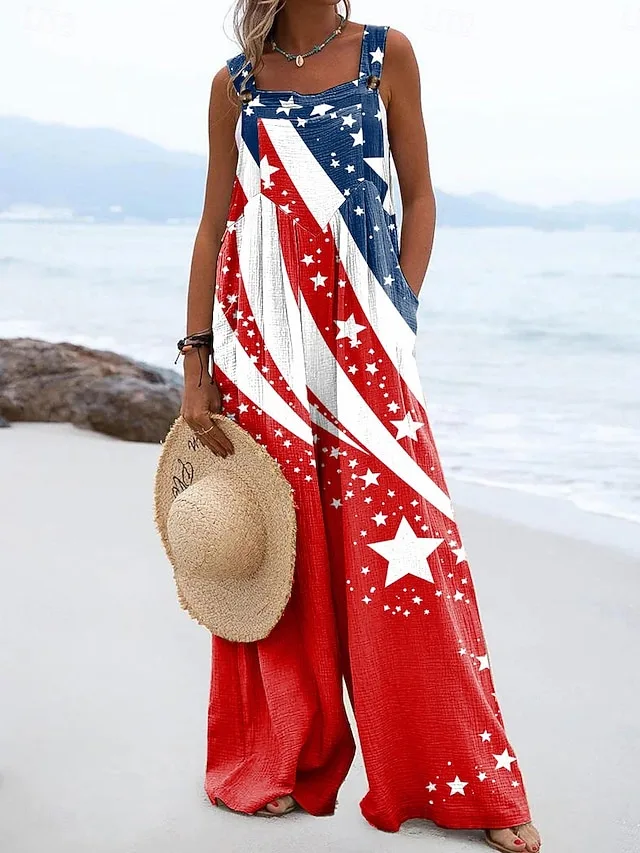 Patriotische Caprihose mit hoher Taille, weichem Komfort und grafischem Print. Jetzt stilvoll für Freizeit und Urlaub entdecken.