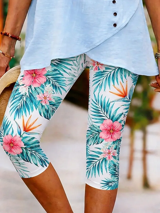 Stylische Capri-Leggings mit hoher Taille, dehnbarem Komfort und floralem Grafikmuster. Perfekt für Büro, Urlaub und Alltag.