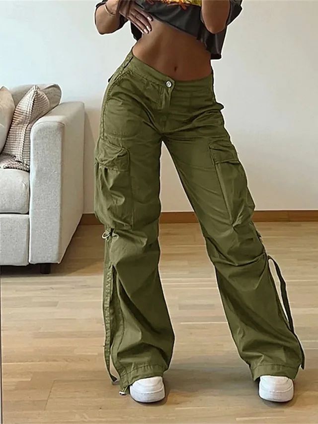 Moderne gerade Damenhose in Streetwear-Optik mit mittlerer Taille und Taschen. Jetzt entdecken und stilvoll kombinieren.