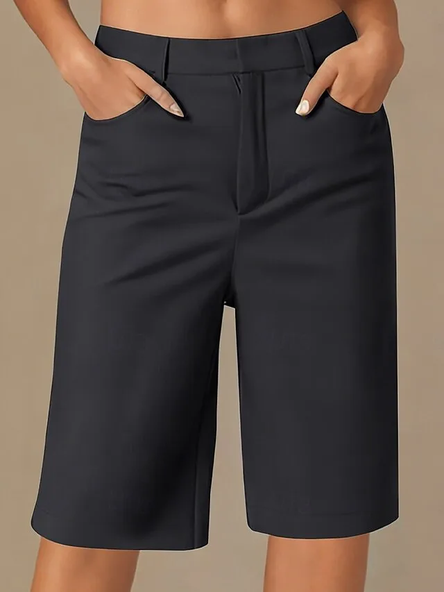 Stylische Bermudashorts mit lockerem Schnitt, mittlerer Taille und Taschen. Jetzt entdecken und lässige Sommerlooks ergänzen.