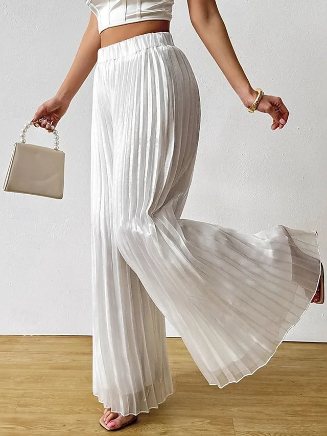 Leichte Chiffon-Hose mit weitem Bein, hoher Taille und elastischem Bund. Jetzt stilvoll und bequem entdecken.