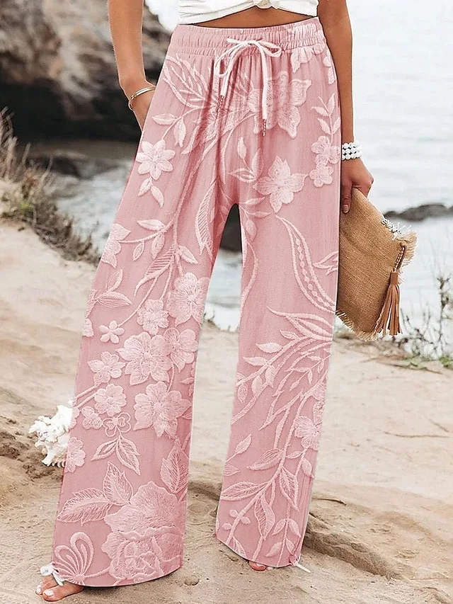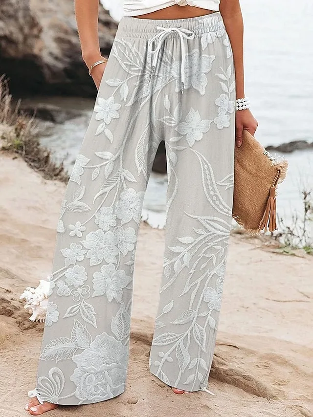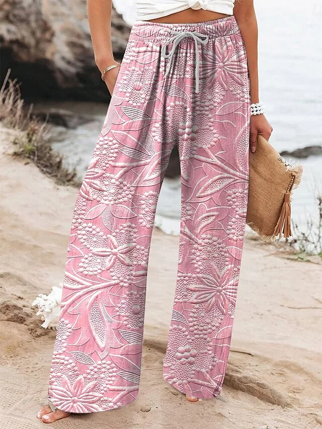 Stilvolle Hose mit hoher Taille, weitem Bein und floralem Print. Bequem, weich und perfekt für Alltag oder Urlaub. Jetzt entdecken.