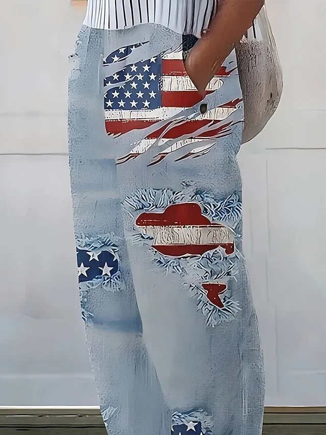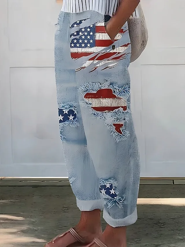 Stylische Damen Hose mit Print, hoher Taille und Seitentaschen. Bequem, atmungsaktiv und perfekt für Alltag oder Wochenende.