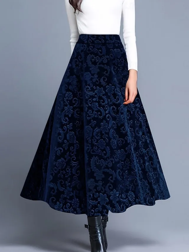 Stilvoller Blumen-Maxi-Rock mit hoher Taille und Samt-Optik. Jetzt entdecken und elegante Looks mühelos veredeln.
