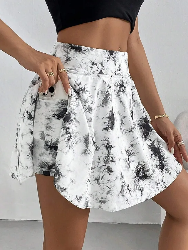 Moderner Minirock mit hohem Bund, Stretch-Komfort und Batikmuster. Perfekt für den Alltag im Sommer – jetzt entdecken.