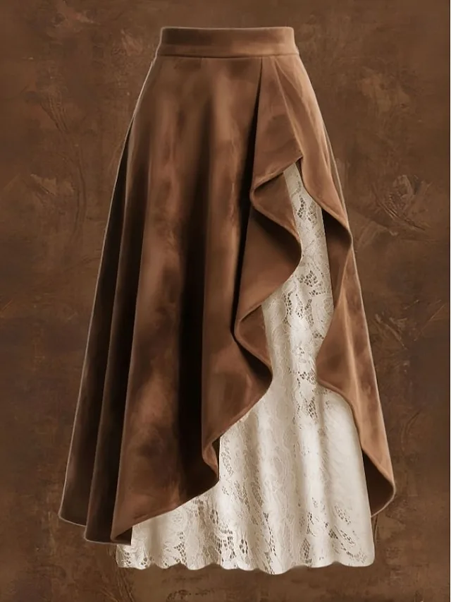 Eleganter Vintage-Rock mit hoher Taille und Spitzen-Detail. Jetzt entdecken und stilvoll durch Alltag und Abend gehen.