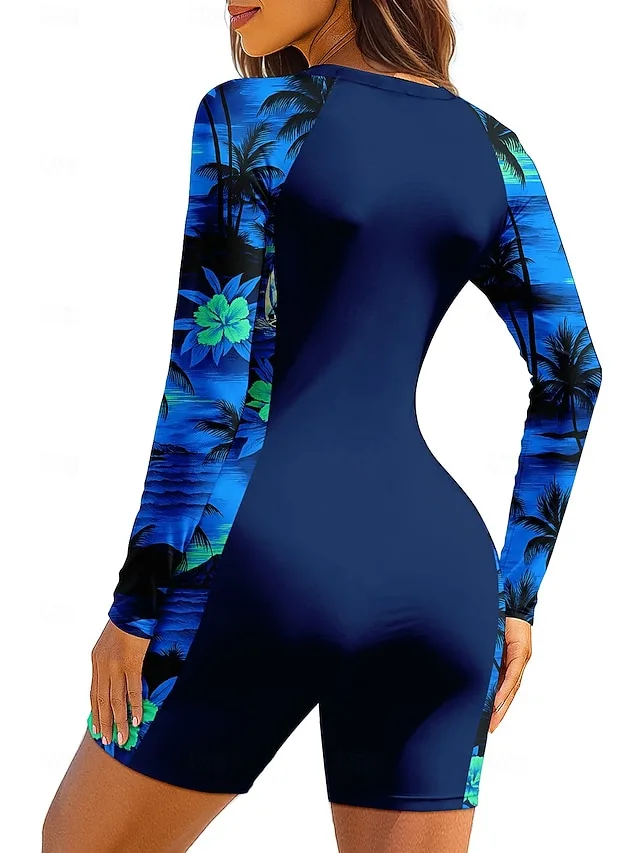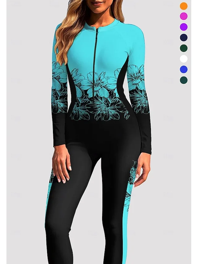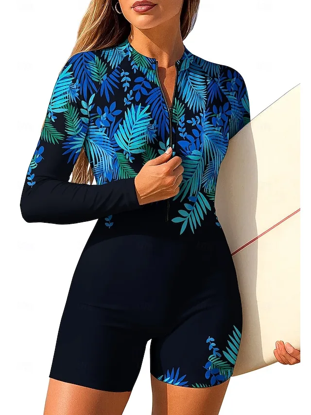 Leichter Damen Badeanzug mit UPF50+, floralem Design und Reißverschluss. Jetzt stilvoll geschützt ins Wasser starten.