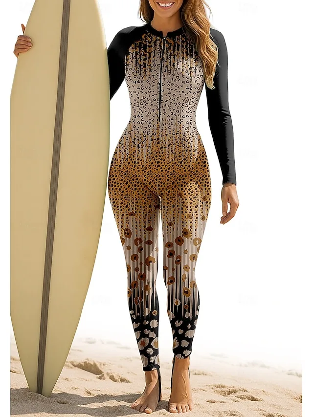 Schnelltrocknender, bedruckter Badeanzug mit UPF50+ und Frontreißverschluss. Perfekt für Strand, Surfen und Wassersport.