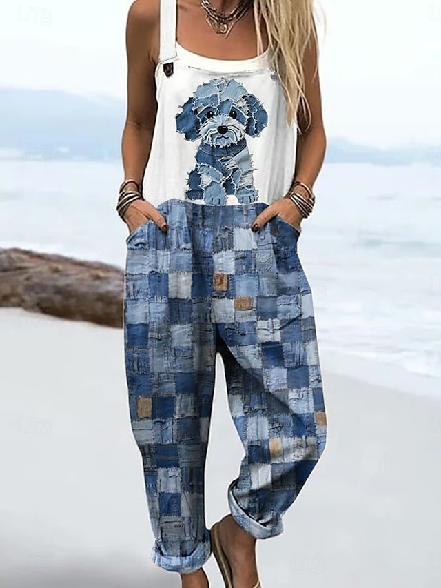 Active Loose Fit Graphic Sleeveless Vacation Dungarees