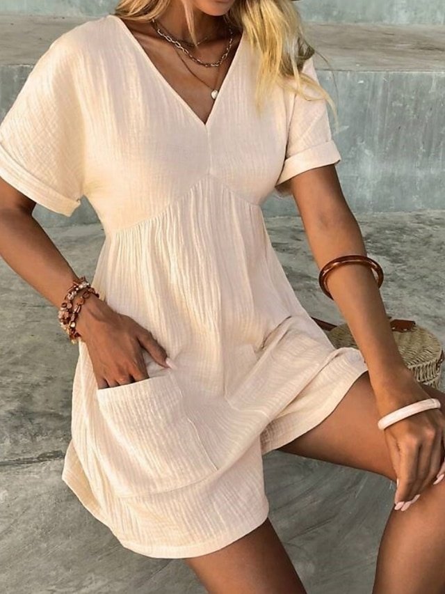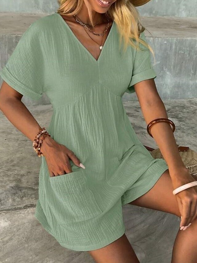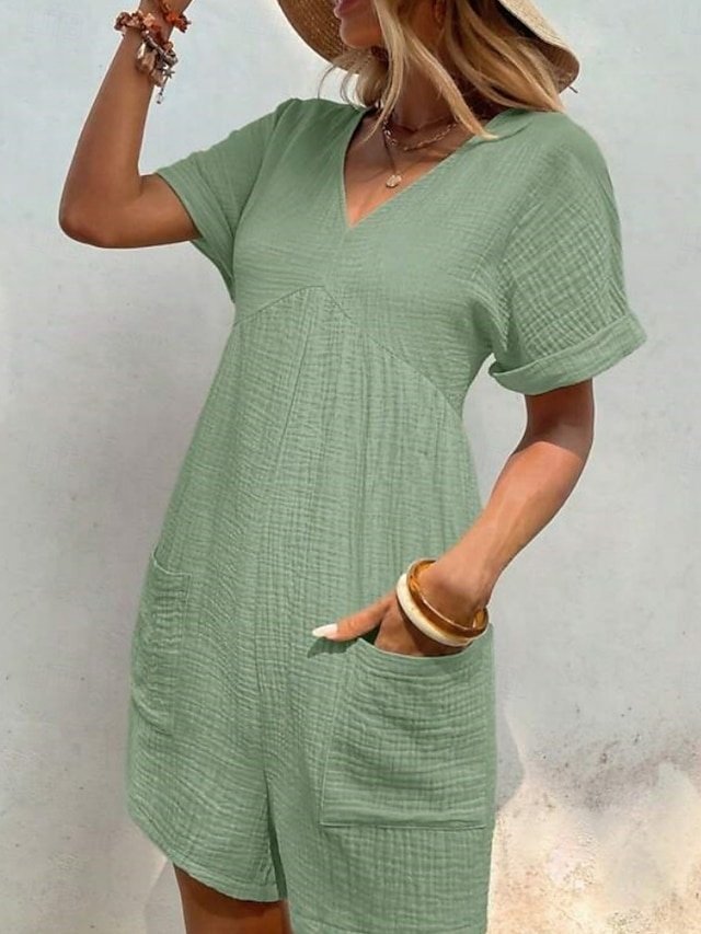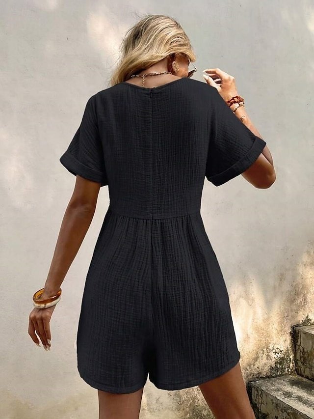 Discover the Active Regular Fit Solid V Neck Short Sleeve Summer Romper. Perfect for vacation and daily wear in Black, Green, or Apricot.