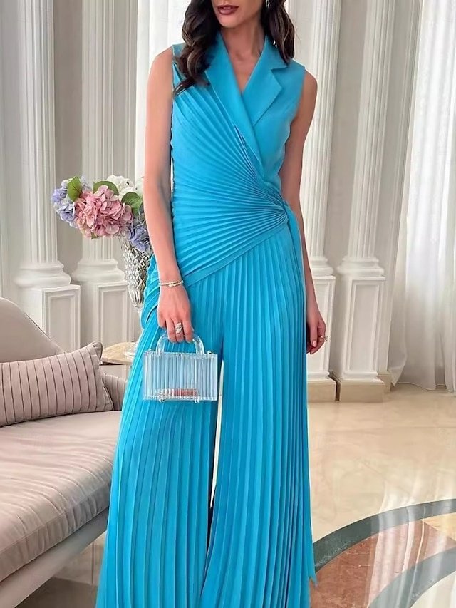 Discover our elegant solid colour jumpsuit with a shirt collar and high waist, perfect for vacations or daily wear. Luxurious comfort meets style.