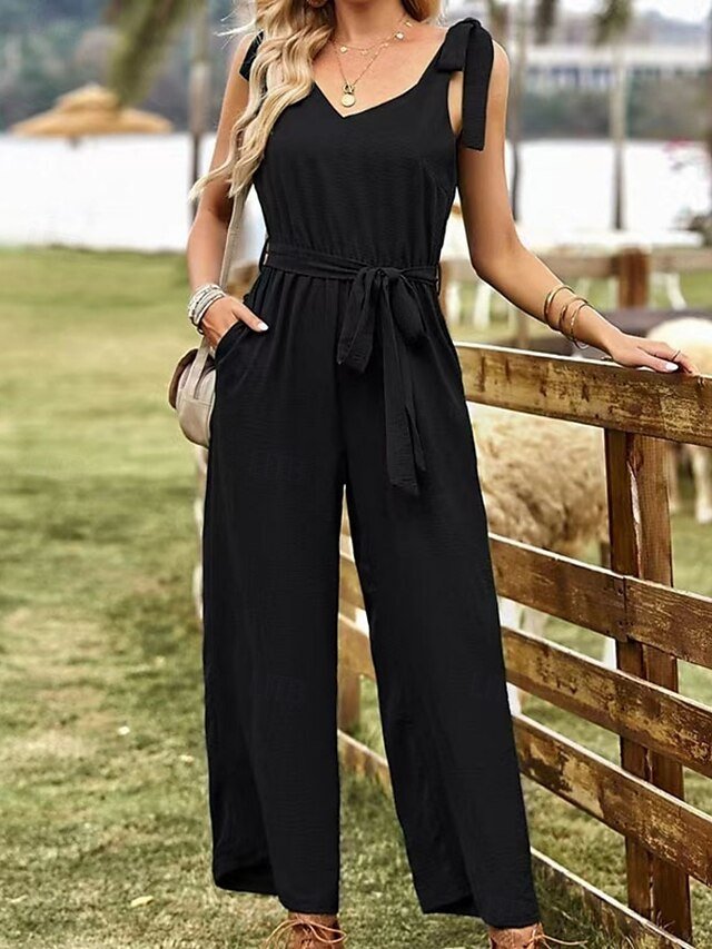 Discover elegance with our Active V Neck Sleeveless Jumpsuit, a perfect blend of style and comfort for your summer adventures.