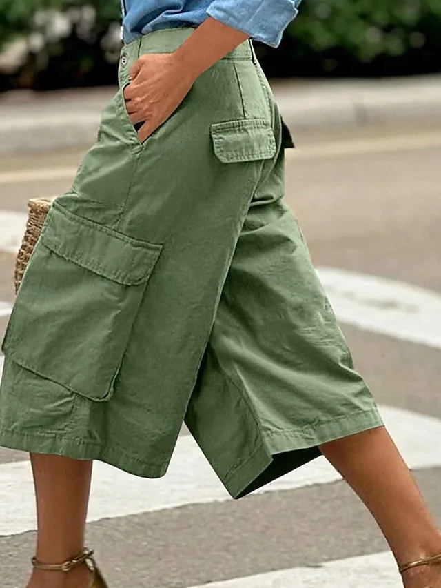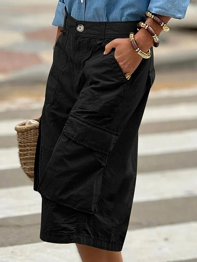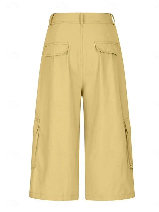 Stylische Capri-Shorts mit hoher Taille und Taschen. Bequem, atmungsaktiv und perfekt für Alltag, Urlaub und Streetwear-Looks.