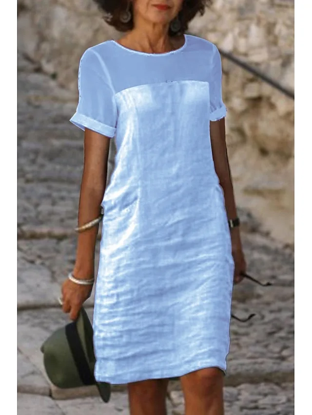 Leichtes Basic-Minikleid mit Rundhals und Kurzarm. Perfekt für Sommer, Urlaub und Alltag – jetzt stilvoll entdecken.