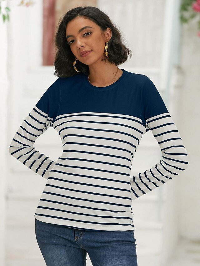 Be the first to review “Basic Regular Striped Round Neck Long Sleeve Tops”
