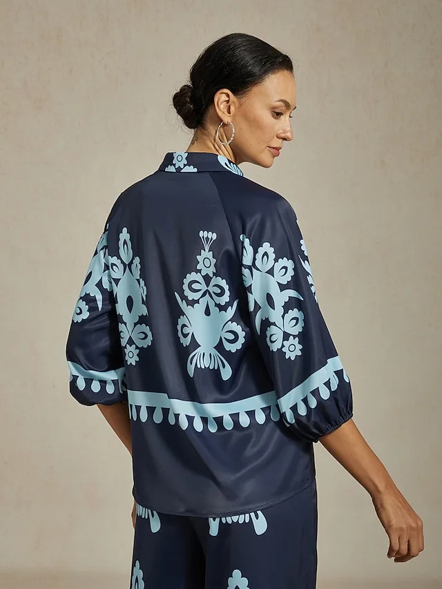Bohemian Lässige Bestickte Hemdblusenkragen 3/4 Ärmel Bluse