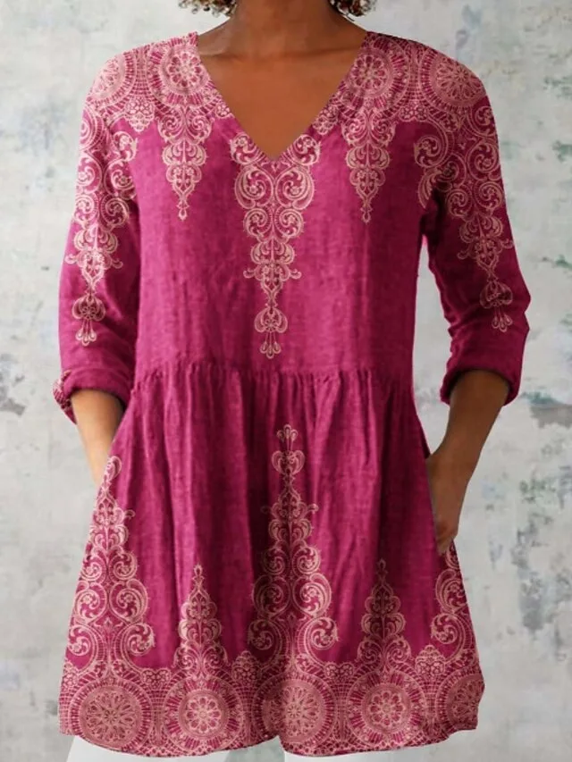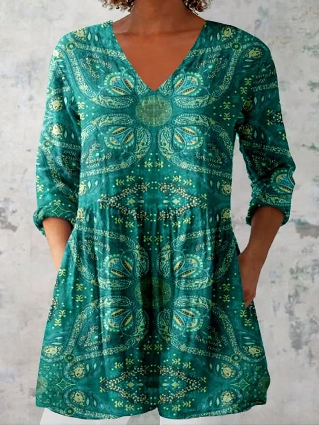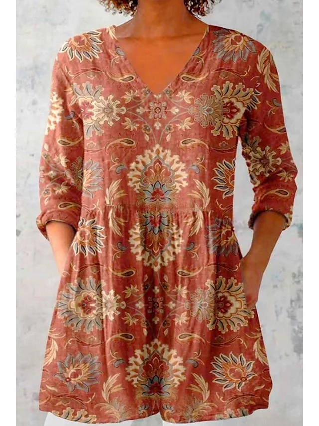 Elegante Blumenbluse im Boho-Stil mit V-Ausschnitt und Langarm. Jetzt entdecken und stilvolle Looks für Frühling und Sommer sichern.