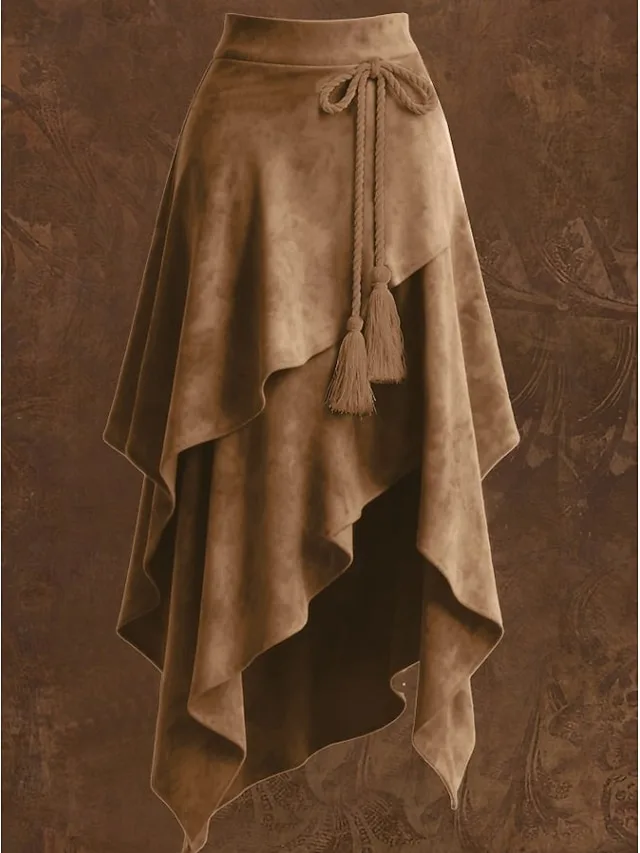 Verleihen Sie Ihrer Garderobe eine mühelos elegante Note mit diesem Rock aus Wildlederimitat in edler Velourleder-Optik. Das geschichtete Design und die schmeichelhafte mittlere Taille schaffen eine feminine Silhouette mit modernem Boho-Charme.