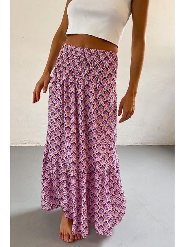 Embrace the vibrant spirit of summer with our exquisite Boho Maxi Skirt. Perfect for sunlit strolls and seaside escapes, this skirt embodies effortless elegance and bohemian charm. Its enchanting floral print coupled with a flattering mid-rise silhouette promises to turn heads wherever you go.
