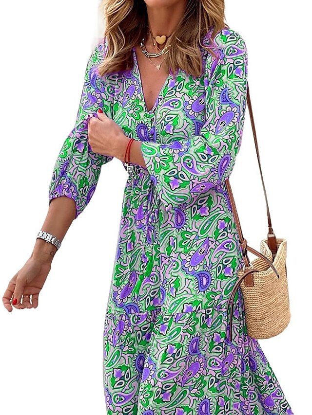 Indulge in the bohemian splendour of our Boho Chic Regular Fit Floral V Neck Long Sleeve Maxi Dress. Designed to captivate and enchant, this dress effortlessly blends elegance with a touch of free-spirited charm, making it the perfect choice for both casual and sophisticated gatherings.