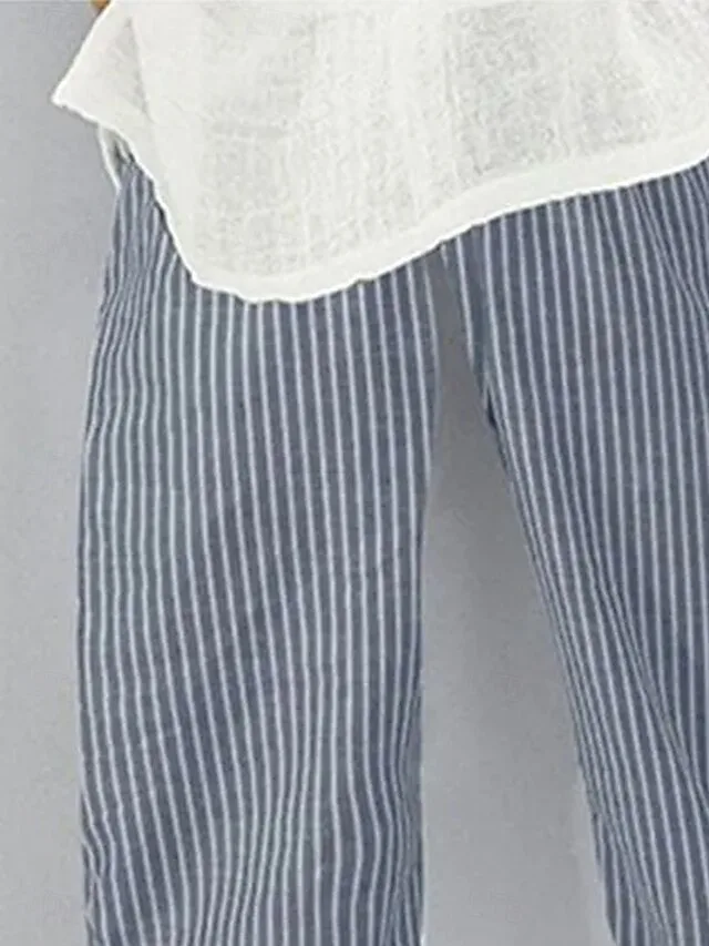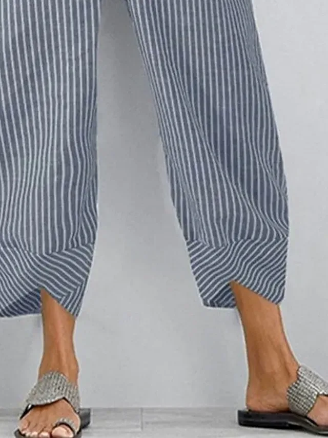 Lässige Boho-Hose mit hohem Bund, weitem Bein und streifigem Grafikmuster. Jetzt entdecken und stilvoll durch den Sommer gehen.