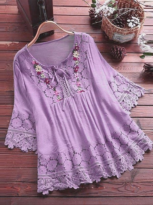 Discover boho elegance with our Loose Floral Lace Blouse. Perfect for summer style in white, pink, blue, purple, green. Shop now for effortless fashion.
