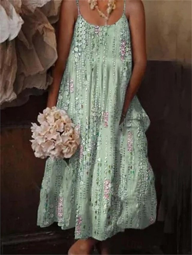 Step into a world of effortless elegance with our stunning Boho Maxi Dress, a perfect blend of comfort and style for your spring and summer wardrobe. This sundress, with its vibrant geometric floral prints, promises to add a splash of colour to your every stride, making it ideal for beach outings and casual strolls alike.