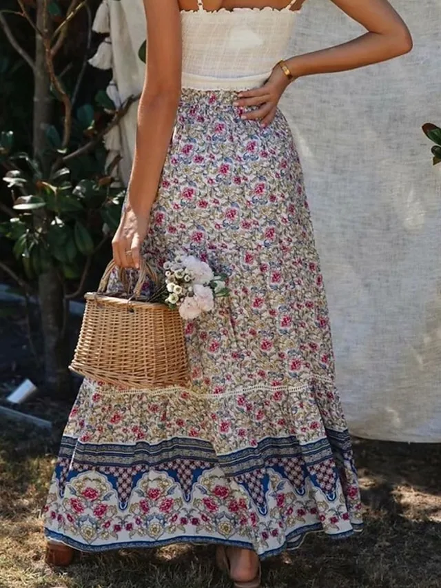 Leichter Boho-Maxi-Rock mit Blumenprint und hoher Taille. Perfekt für Sommer-Looks mit femininer Eleganz – jetzt entdecken.