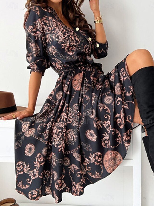 Discover ultimate elegance with our Boho Floral V Neck Midi Dress. Perfect for a sophisticated spring or fall ensemble.