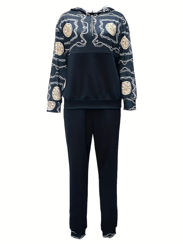 Step into the season with an ensemble that embodies both style and comfort. Our Boho Regular Fit Graphic Hooded Long Sleeve Tracksuit is your chic companion for both outdoor adventures and casual days in the city. The exquisite blue hue complemented with a graphic print delivers a bold fashion statement, perfect for the modern woman who loves a touch of bohemian flair.